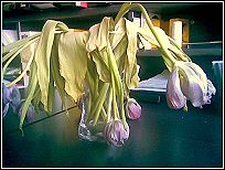 Die Blumen hatten über das Wochenende das gesammte Wasser aufgebraucht und hingen total traurig über den Vasenrand.
