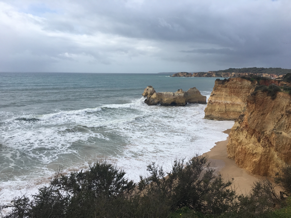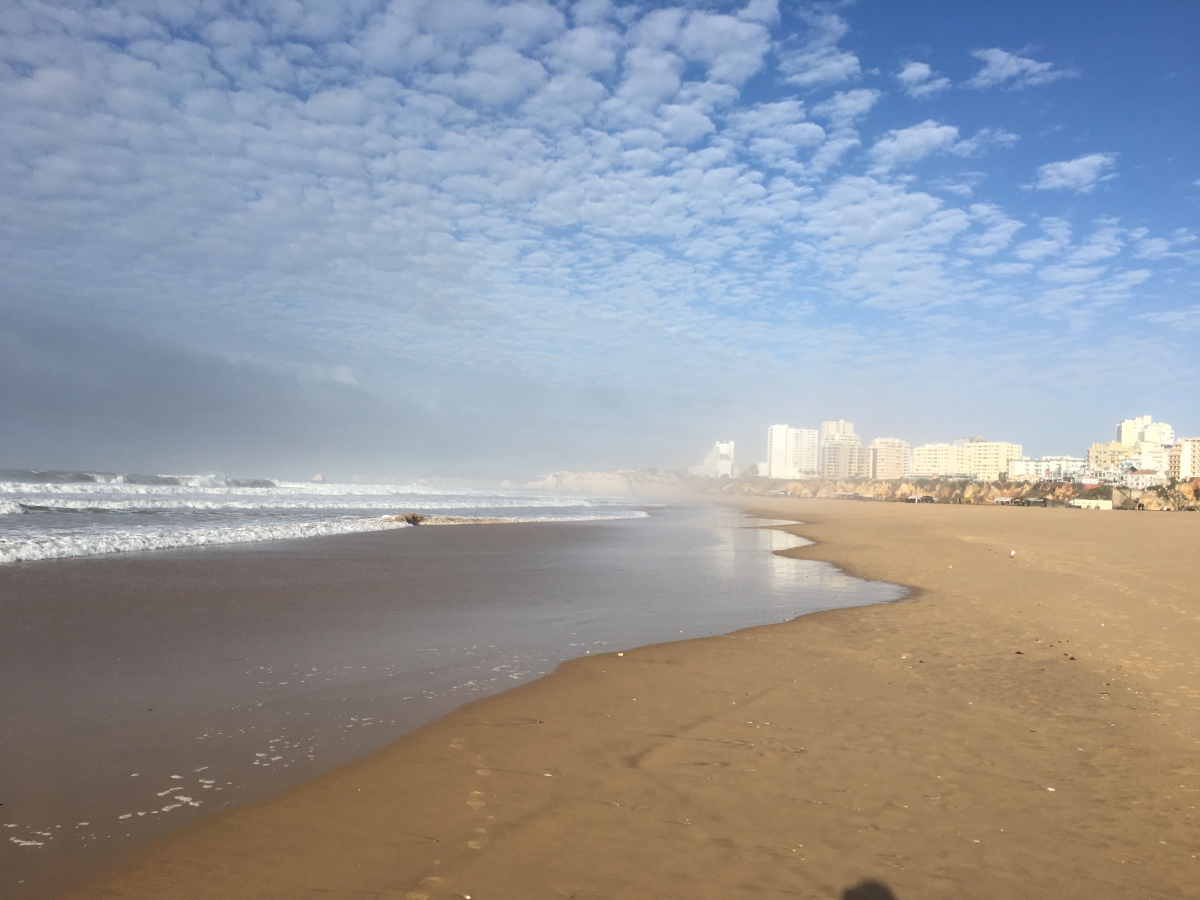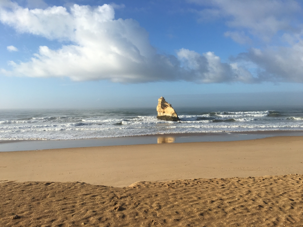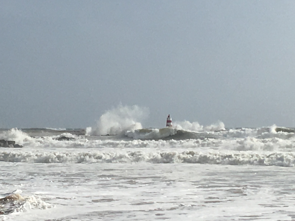 Vielleicht wird heute ein schöner Tag ... Wir beschließen eine Strandwanderung zu unternehmen. Es ist stürmisch aber trocken. Am Strand ist fast kein Mensch und es gibt wunderbare Wellen.