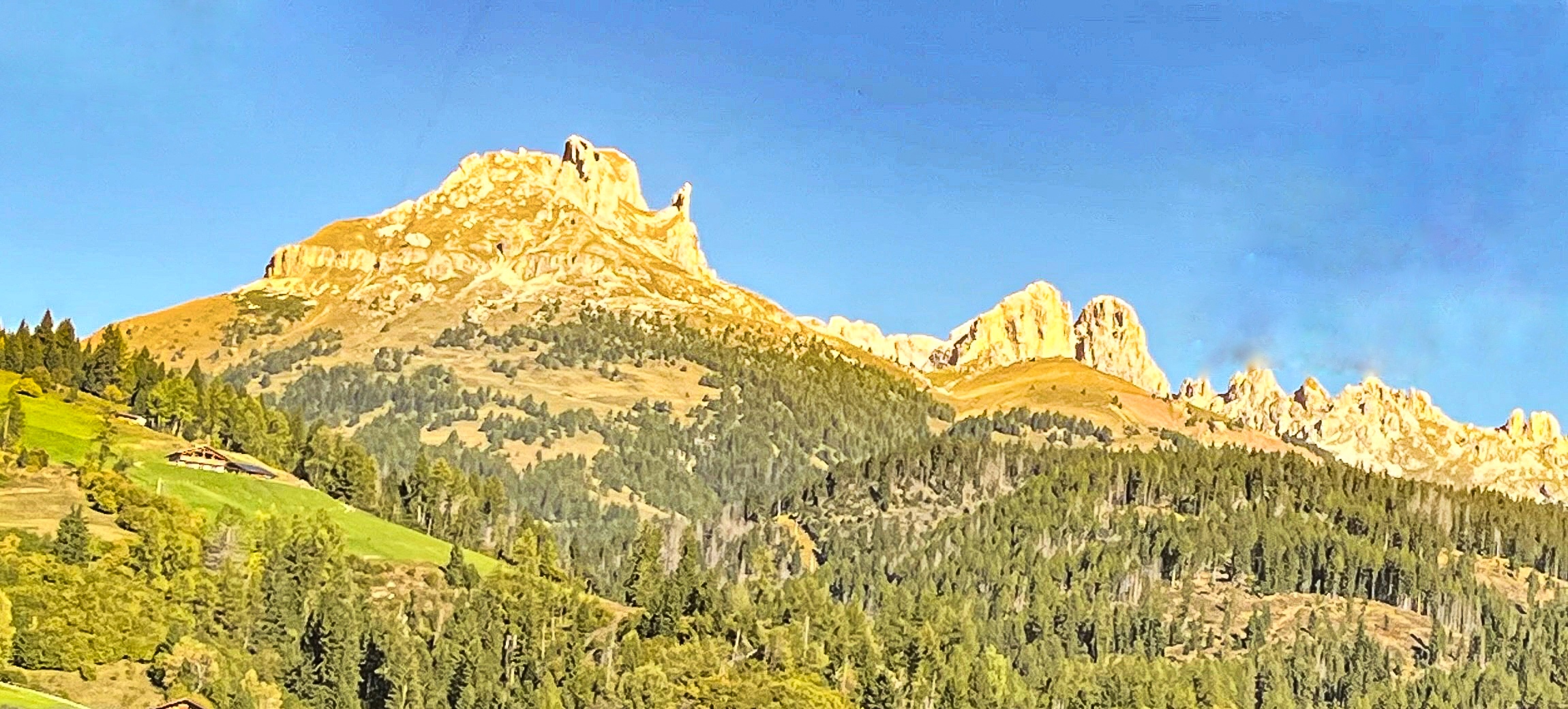 Danach ging es dann weiter in Richtung Berge vorbei am Rosengarten - wir hatten Glück, der Reiseleiter meinte, das selten der Blick dorthin so klar wäre ... leider saßen wir im Bus auf der falschen Seite und es gab auch keinen Fotostopp ... er erzählte uns aber die Sage vom König Laurin ... wer will, kann hier nachlesen...