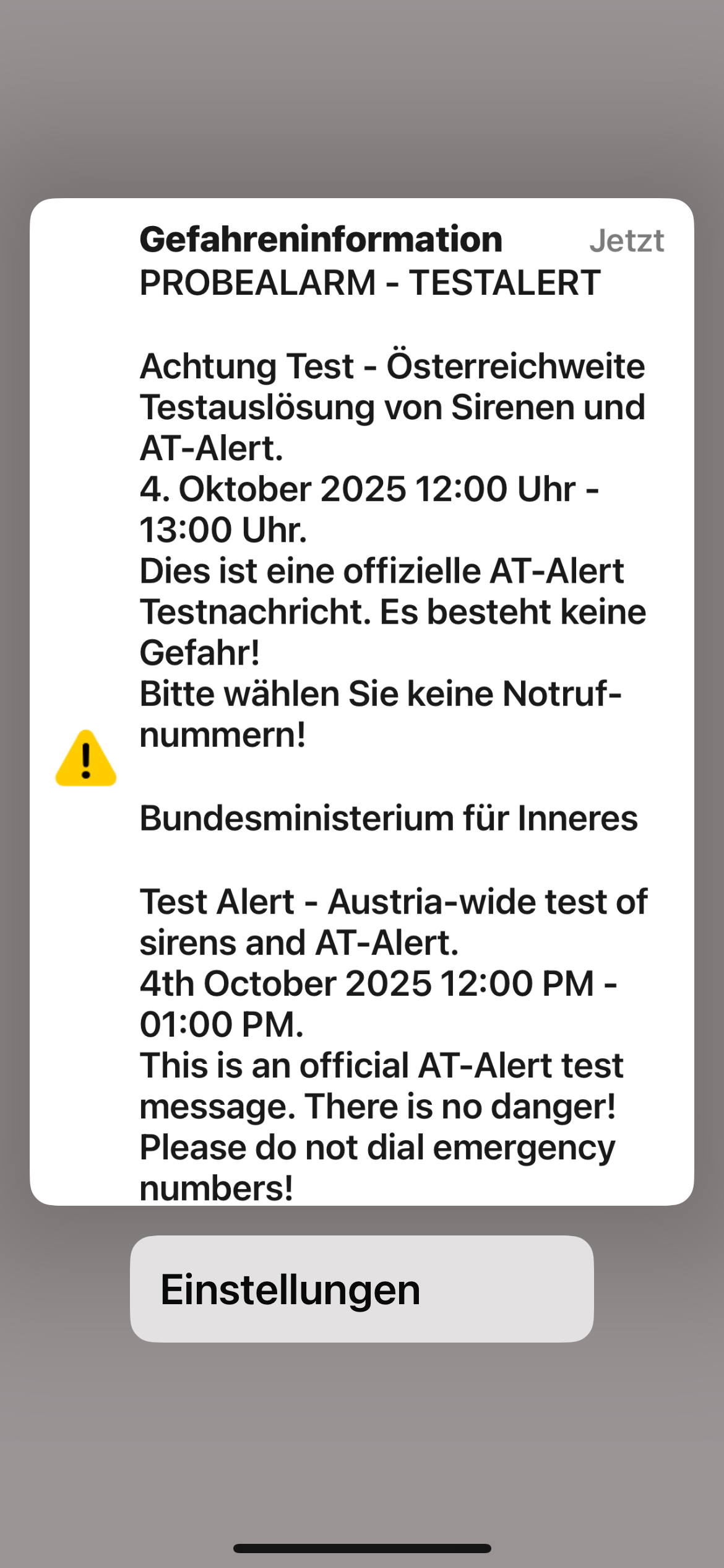 Der Hit war dann noch Mittag um 12:00 als alle Handys im Bus schnellerten :) es gab Probealarm in Österreich ...